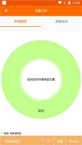 4、返回首页点击流量分析,这里会将这些流量的来路国家和来路域名给你一一呈现;