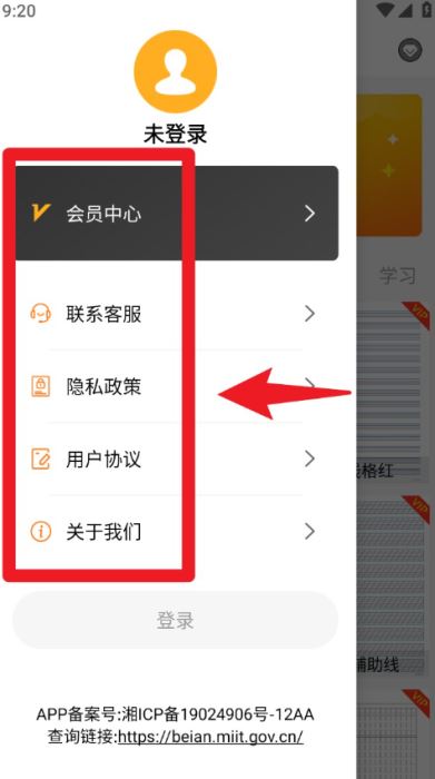 点击左上角的头像图标进入个人中心,在这里可以查看自己的VIP状态、联系客服,还能阅读隐私政策与用户协议等相关信息。