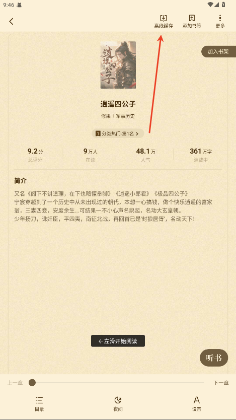 4. 离线阅读用户可以下载小说到本地,随时随地享受离线阅读的乐趣。