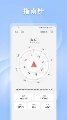指南针方位仪是一款功能强大的智能工具,为用户提供精准的方向指引和天气信息。的界面设计简约,内存占用小,适合各种设备使用。软件不仅包含传统的指南针功能,还整合了实时天气、气压、海拔等多种数据,帮助用户在户外活动时更好地掌握环境信息。