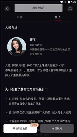 点击课程,还能查看讲解老师的介绍,了解相关信息后再决定是否购买该课程。