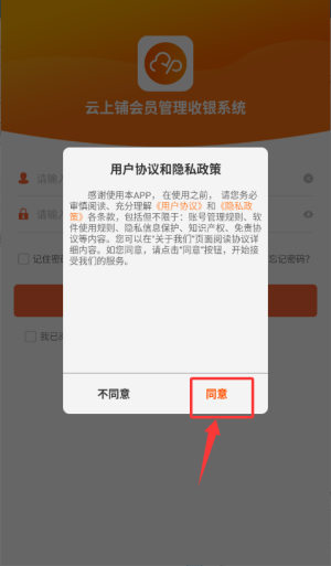 阅读用户协议与隐私政策提示后,点击"同意"按钮即可进入。
