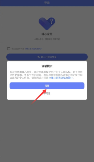 首次启动时,系统会展示用户协议和隐私政策。阅读完毕后,点击“同意”按钮即可进入主界面。