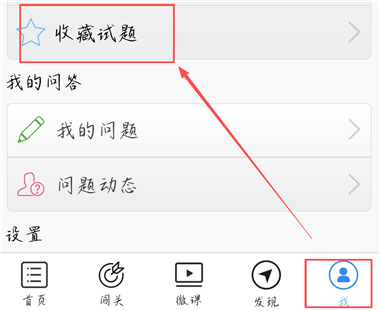 切换至【我】页面,点击【收藏试题】选项。