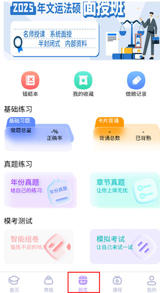 拥有丰富的题库,包括法硕基础习题、章节真题和年份真题,帮助考生全面了解考试内容和形式。