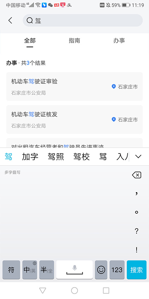 2、输入相关办事事项的关键字就可以智能查找出具体办事项目