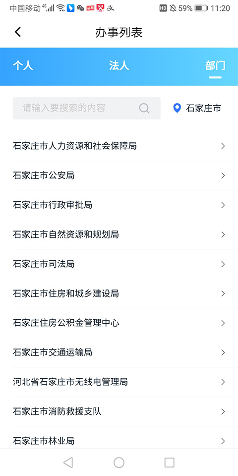 3、也可以通过按部门进行办事项目查找
