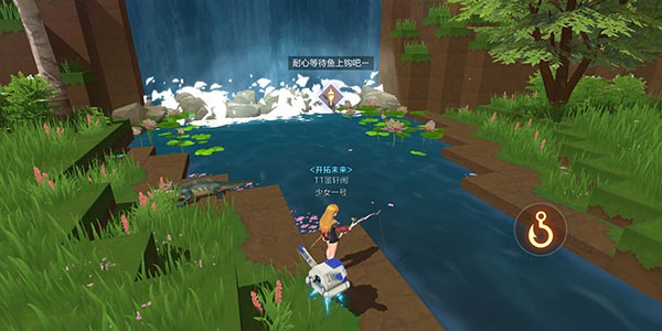 等待上钩并收杆:抛竿后,右手边会出现鱼钩图标,头顶会出现浮标,此时进入等待状态。当头顶图标变为绿色鱼图标,鱼钩也变为绿色时,说明鱼上钩了,要尽快点击鱼钩进行收杆,否则鱼会脱钩。