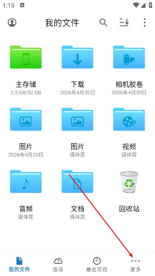 1、打开猫头鹰文件,点击更多进入工具页面。