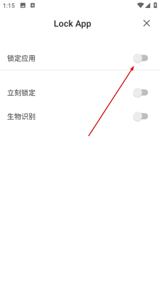 4、打开锁定应用开关,完成功能开启操作。