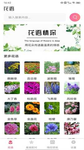 3. 选择花语或星座配对:在首页选择花语查询或星座配对功能,输入相关信息。