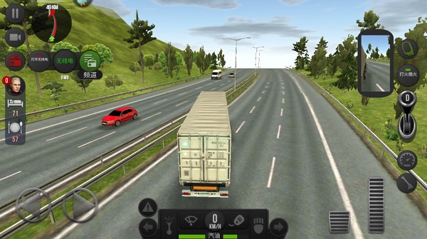 4、进入驾驶模式后,首先需要点击右侧打火按键来启动卡车,将档位挂到D档位上即可起步,点击下方的油门就可以发动汽车了。注意上坡启动,上坡启动,上坡启动, 重要的事情说三遍。