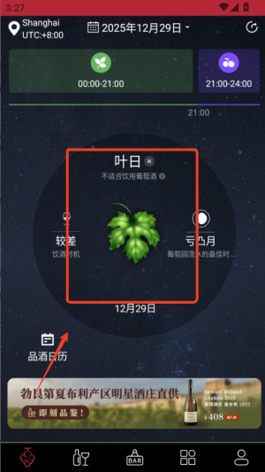进入主界面日历模块,系统将根据生物动力法理论自动标记每日类型,并同步显示对应的品酒建议。