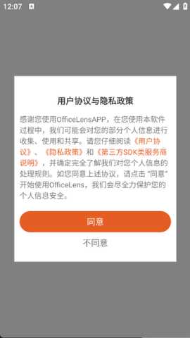 在本站下载OfficeLens软件后,安装并打开,用户需同意使用协议以进入主界面。