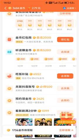 7、将屏幕向下滑动可以看到各种任务来获得金币。