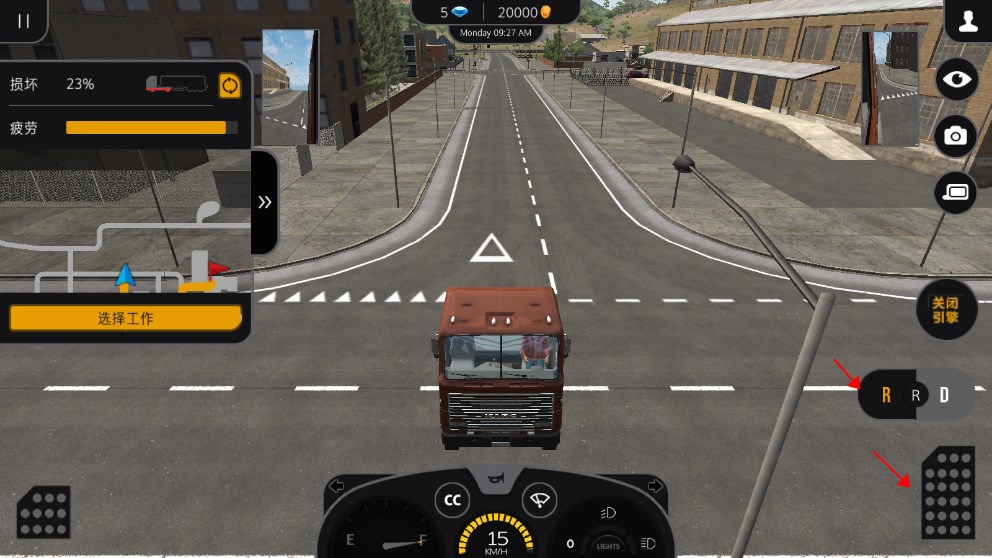 3、之后即可开始驾驶卡车运输任务,右边有开启功能以及加速等键位;