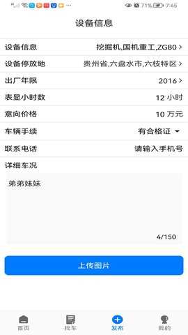 1. 设备发布用户可以通过简单的步骤发布自己的二手工程机械信息,上传图片和详细描述。