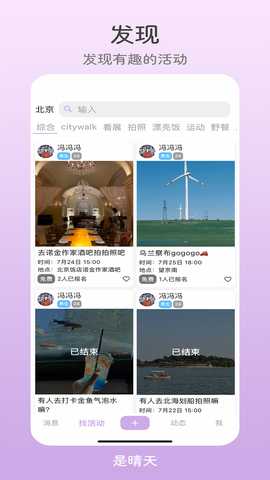 是晴天是一款专为年轻人设计的社交活动平台,简化活动的发起与参与流程。轻松创建活动,快速找到志同道合的朋友,享受丰富多彩的社交体验。无论是打球、探店还是参加展览,这里都能满足年轻人对社交的各种需求。通过简单的操作,在闲暇时刻找到合适的玩伴,享受生活的乐趣,结交到真诚的朋友。