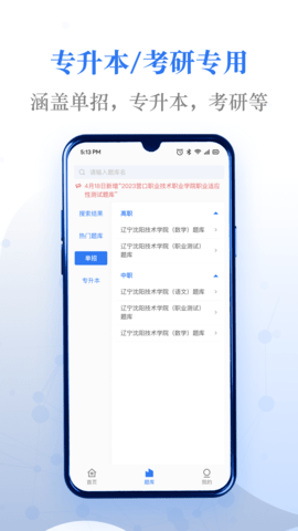 1. 专升本/考研专用易刷题专门为准备专升本、考研等考试的学生设计,涵盖了单招、专升本、考研等多种考试类型,满足不同用户的需求。