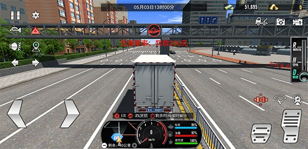 5、在运输过程中,玩家通过下方地图导航至运输终点,但在运输途中注意系好安全带(安全带时刹车上方的红色图标),并且不要违反交通规则、以及撞车等,不然不仅会返款扣钱,还会造成货损;