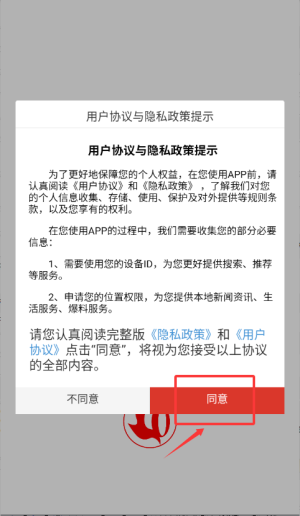 首次启动微将乐App时,请在协议提示页面点击“同意”进入。