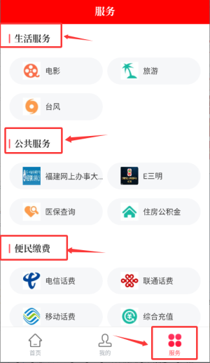 通过服务页面,可办理生活缴费及公共服务等相关事项。