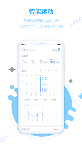 3、数据可视化:通过图表查看自己的运动和睡眠数据,直观了解健康状况。