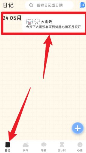 5、回到首页即可看到刚写完的日记条目,包含标题、内容、天气与心情表情,一眼就能回顾当天状态。