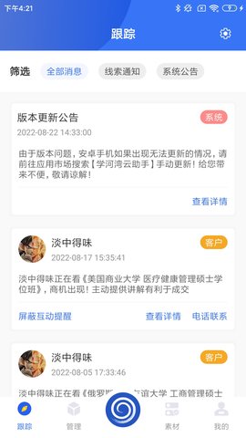 3、便捷的客户管理操作:商家可以通过快速拨打电话、发送消息、贴标签等功能,提升与客户的互动效率,增强客户关系。