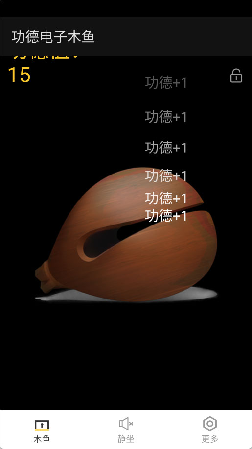1、“笃——功德+1!”打开功德电子木鱼App,无需实名认证,也不用手机号注册登录,即刻免费上手敲击,每一下都能积累功德值,简单直接,解压又安心。
