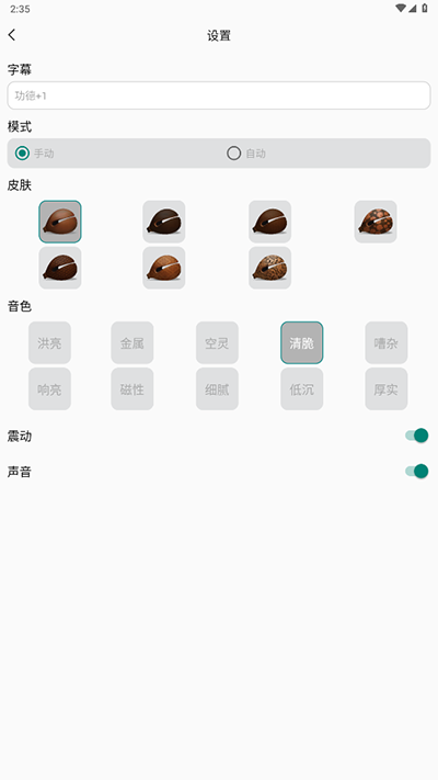 2、用户可以根据个人喜好,自由调节木鱼音效、切换多种精美皮肤,满足不同审美与心境需求。