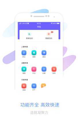 4. 使用功能用户可以在首页找到各类功能模块,如审批、通告、任务等,点击进入即可使用相应功能。