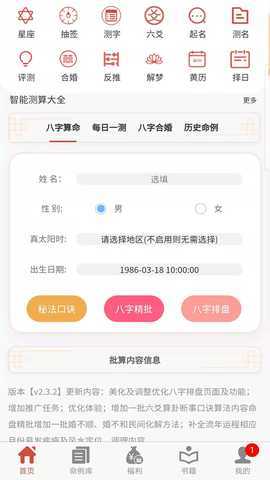2. 丰富的功能模块:软件不仅提供八字排盘,还涵盖紫微斗数、六爻、星盘等多种命理分析工具,满足不同用户的需求。