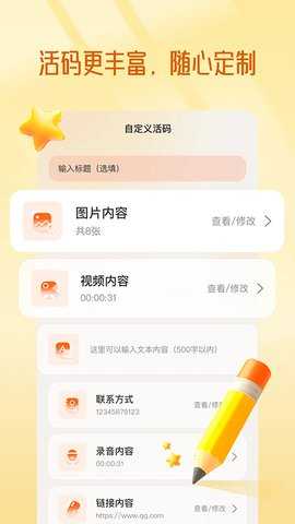 活码生成:生成活码二维码,后期可随时修改内容,避免频繁更换二维码。