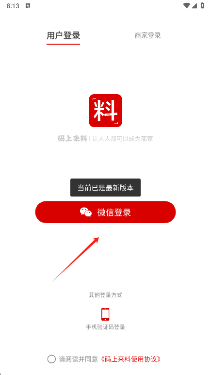 接着可以使用微信进行第三方登录,使用手机验证码登录也是可行的。