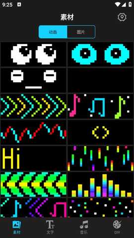 2、素材库:应用内置丰富的LED图案、动画模板和音乐素材,供用户选择和使用。