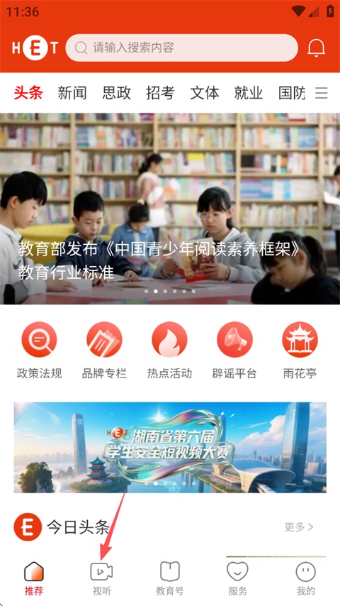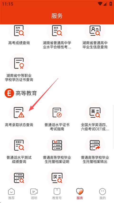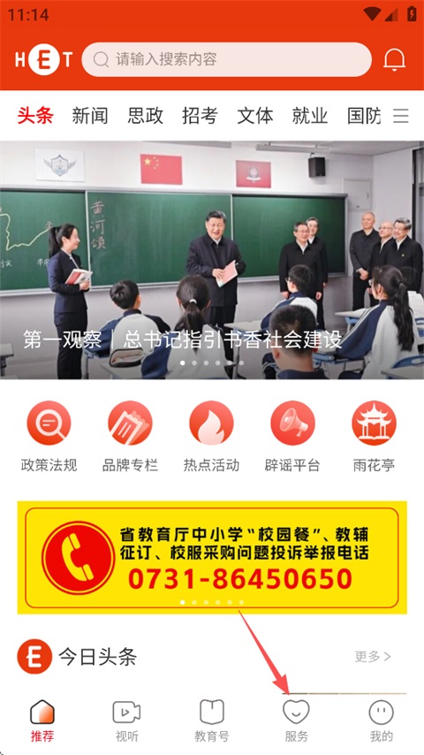 1、打开湖南教育发布App,点击底部的「服务」选项;