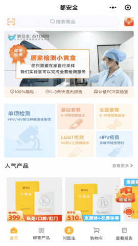 3、与传统的医院检测方式相比,都安全采用邮寄检测的方式,既避免了去医院的尴尬,也降低了信息泄露的风险,真正做到了用户隐私保护。