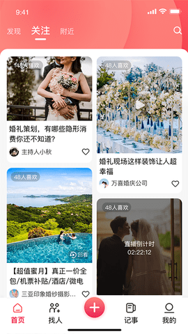 3、婚尚动态与直播:通过这两个功能分享婚礼准备的过程,也可以进行婚礼现场的直播,让远方的亲友一同见证这一重要时刻。