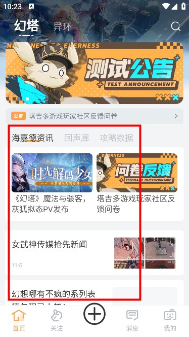 2.在上方可以自由切换异环和幻塔两款不同游戏的社区论坛。