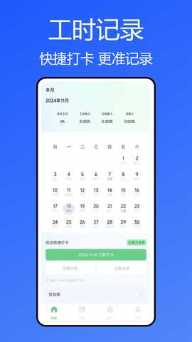 3. 添加工作记录:在主界面中,选择工作记录功能,输入打卡时间和工作时长,软件会自动计算工时。