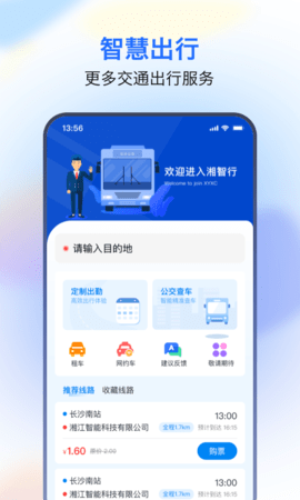 3、湘智行在常规公交服务中,提供实时的公交线路和站点信息,帮助用户快速找到合适的公交车,节省等待时间,提高出行效率。