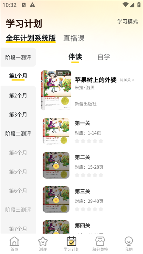 6、返回主界面,进入“学习计划”页面即可看到系统推荐的书单,孩子可按计划进行阅读。