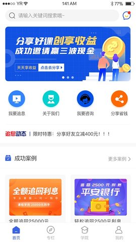 2、追息高手是一款教育应用,通过追回银行信用卡多收缴的利息,为学员提供有效助力。