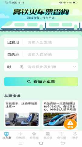 打开软件后,输入出发地、目的地及出发时间,系统将自动显示相关票务信息,方便用户选择。