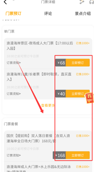 选择门票服务后,进入景点详情页,可查看票价、开放时间、购票须知等关键信息。