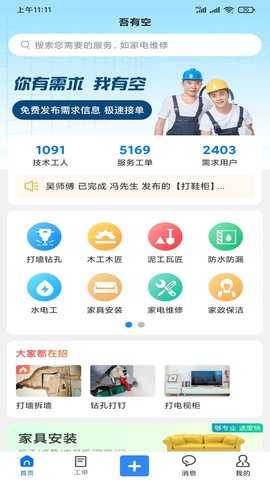 吾有空是一款专业的线上接活结算的免费灵活用工服务APP,旨在为零工市场的用户提供便捷、安全且有保障的找零工和找工人的生活需求服务。无论是需要找工作的人还是有招工需求的企业,吾有空都能提供免费的咨询和信息发布渠道,用户可以放心地发布招工信息、找工人或者接活,且不收取任何费用。