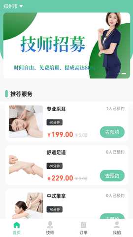 3. 选择服务登录后,进入首页,浏览可选的按摩服务项目,选择适合自己的服务。