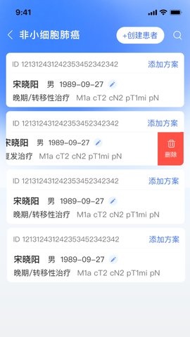 在患者档案中点击推荐方案,系统会根据患者的病情自动生成多个治疗方案供选择。