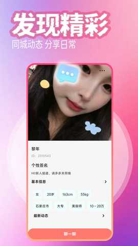在找到心仪的人后,可以通过文字、语音或视频等多种方式进行沟通。用户也可以查看同城的线下活动,主动参与以扩大社交圈。